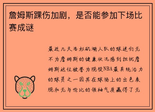 在篮球的世界里,自信是取胜的关键。而就在这场即将到来的比赛前夕,骑士队主教练在赛前发布会上所展示出的信心,点燃了全队的士气。他斩钉截铁地表示:“我们非常自信能打败对手。” 这种自信并非凭空而来。自赛季开始以来,骑士队在主帅的带领下,战术体系逐渐成熟,队员之间的默契度也日益增强。尤其是在最近几场比赛中,骑士队展现出了强大的进攻火力和稳健的防守能力。这种状态的持续提升,成为了他们面对强敌时最大的底气。...